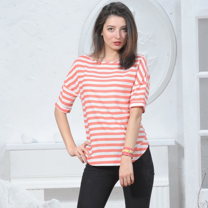 Блуза, размер 52, рост 164 см, цвет персик/белый (арт. 4945а С+)