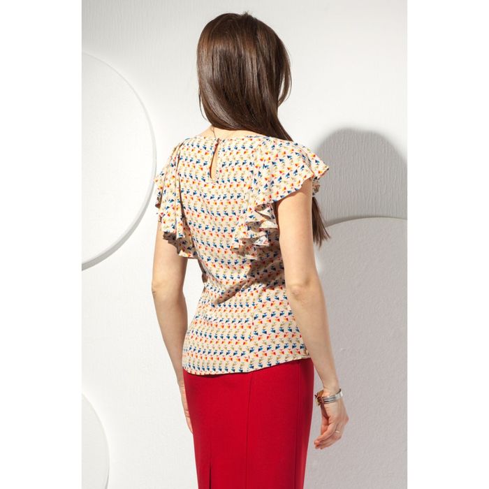 Блуза женская, размер 50, цвет бежевый+синий Б-174 — выбор стильных людей. Вещь изготовлена из качественных и безопасных материалов, а над дизайном работала команда настоящих профессионалов.