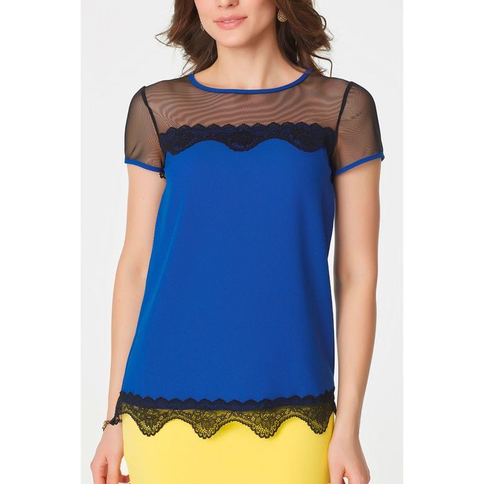 Блуза женская, размер 50, цвет синий+чёрный 251-1