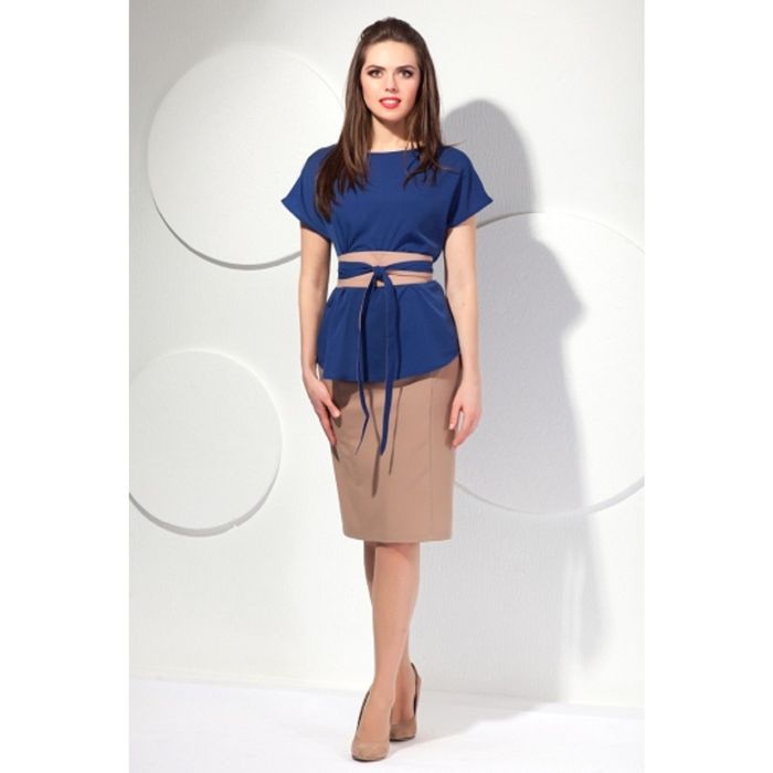 Блуза женская, размер 54, цвет синий + бежевый Б-143 — выбор стильных людей. Вещь изготовлена из качественных и безопасных материалов, а над дизайном работала команда настоящих профессионалов.