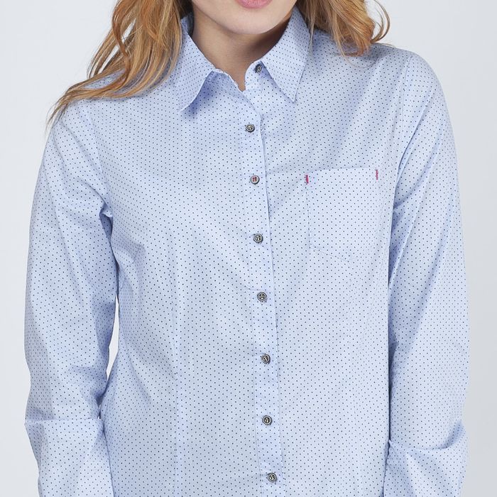 Блузка длинный рукав 15113,Горох, размер 44, рост 170 см, цвет голубой — выбор стильных людей. Вещь изготовлена из качественных и безопасных материалов, а над дизайном работала команда настоящих профессионалов.