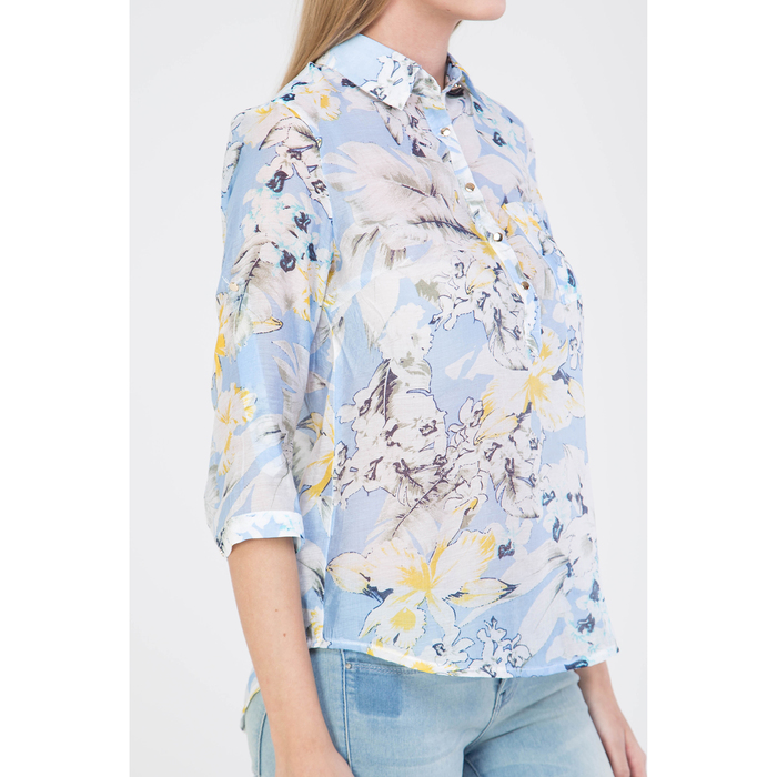 Блузка женская 16130-7, цвет голубой, р-р 48 рост 175 — выбор стильных людей. Вещь изготовлена из качественных и безопасных материалов, а над дизайном работала команда настоящих профессионалов.