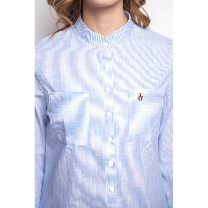 Блузка женская 16177L-7, цвет голубой, р-р 54 рост 175 — выбор стильных людей. Вещь изготовлена из качественных и безопасных материалов, а над дизайном работала команда настоящих профессионалов.