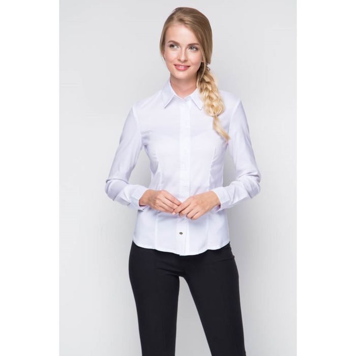 Блузка женская с длинным рукавом, размер 48, цвет белый (арт. 1005-1628) — модель, которая отлично впишется в базовый гардероб деловой леди.