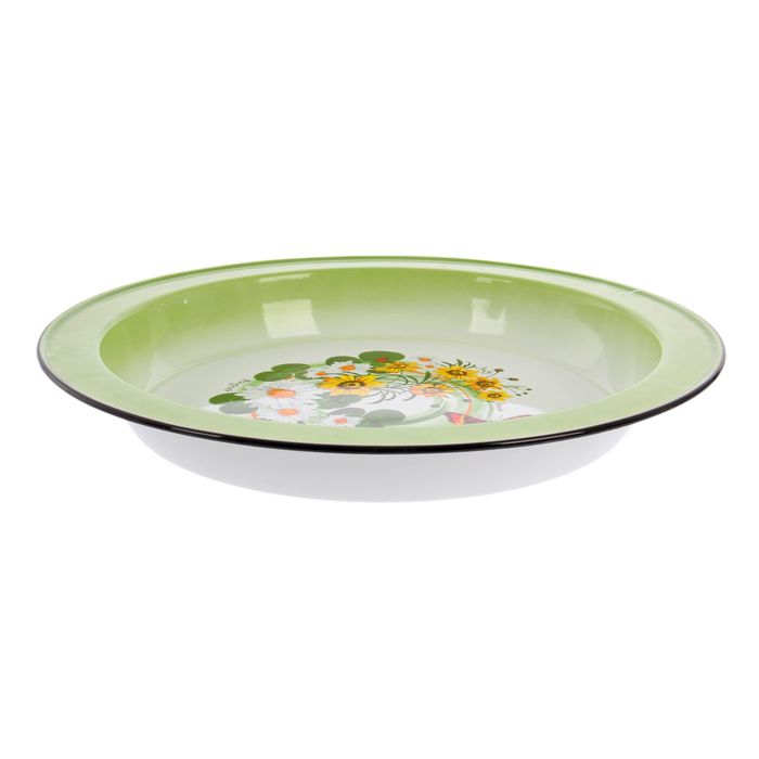 Красивое блюдо из эмалированной стали станет приятной альтернативой обыкновенному подносу. Оригинальный предмет дополнит интерьер и превратится в обязательный атрибут домашних трапез.