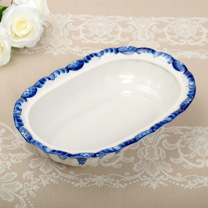 Блюдо для горячего «Торжество», с крышкой, 34×22×13,5 см, гжель