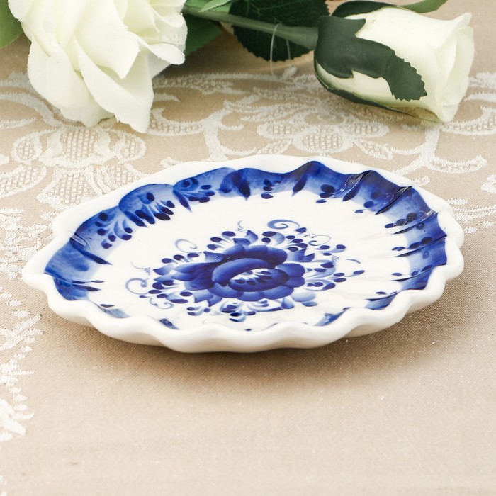 Блюдо под рыбу «Ракушка», гжель, кобальт