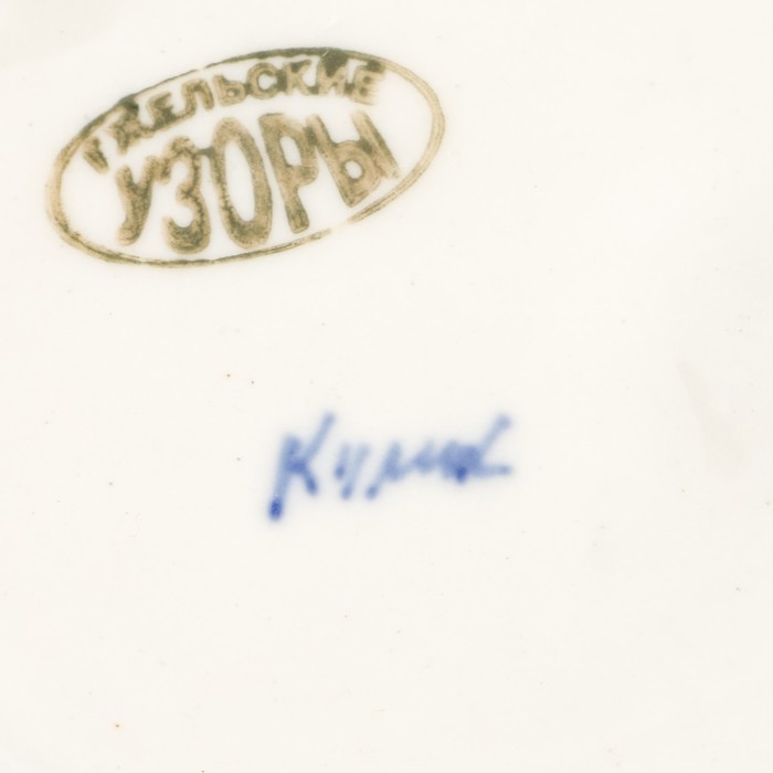 Гжель словно вобрала в себя красоту русской зимы: белизну снега, твёрдость льда, сияние инея, вычурность морозных узоров, синеву неба в ясные дни.