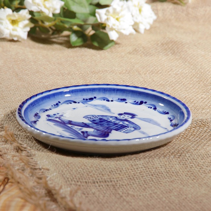Блюдо "Праздничное", малое, сюжет, гжель, фарфор, 1с