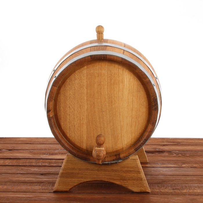 Бочка дубовая, 15 л, обруч из нержавеющей стали, на подставке, УЦЕНКА