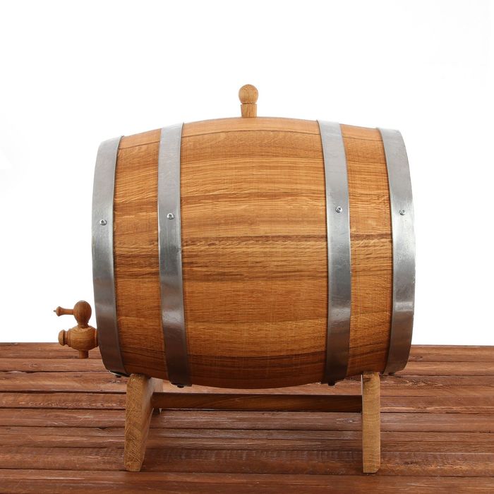 Бочка дубовая, 15 л, обруч из нержавеющей стали, на подставке