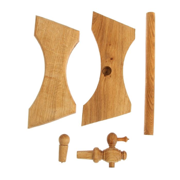 В комплект входит: подставка из 3 сборных частей (ножки и перекладина), кран и пробка. Все детали вы сможете закрепить без дополнительных инструментов: просто вставьте круглые элементы в предназначенные для них отверстия.