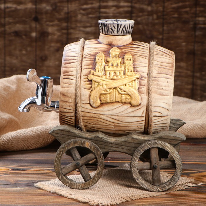 От качества посуды зависит не только вкус еды, но и здоровье человека. Бочка на деревянной телеге "Замок", серебристый кран, 2,5 л — товар, соответствующий российским стандартам качества. Любой хозяйке будет приятно держать его в руках. С нашей посудой и кухонной утварью приготовление еды и сервировка стола превратятся в настоящий праздник.
