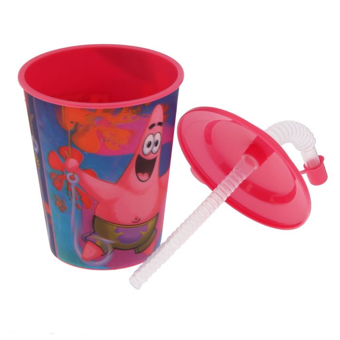 Бокал 3D 400 мл "Губка Боб", с крышкой и трубочкой, цвет розовый