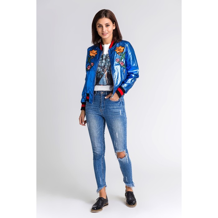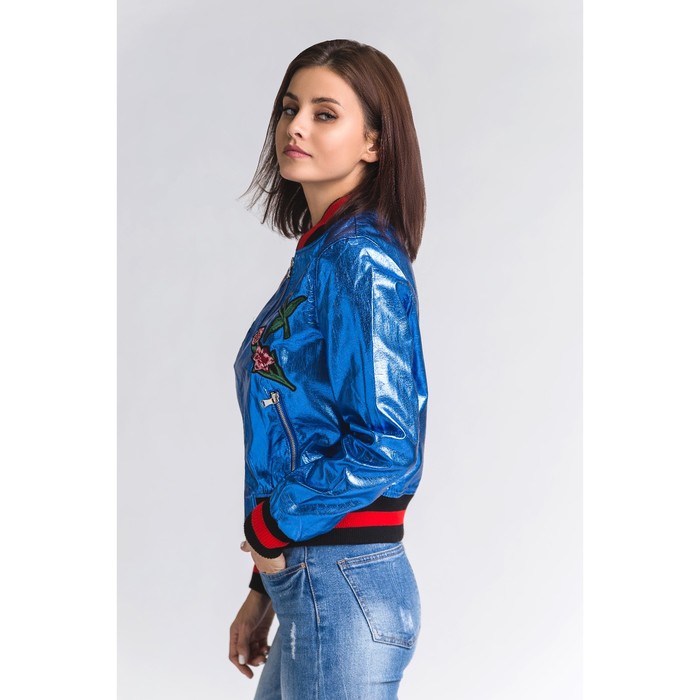 Бомбер вышивка р.44, цв. синий металлик,