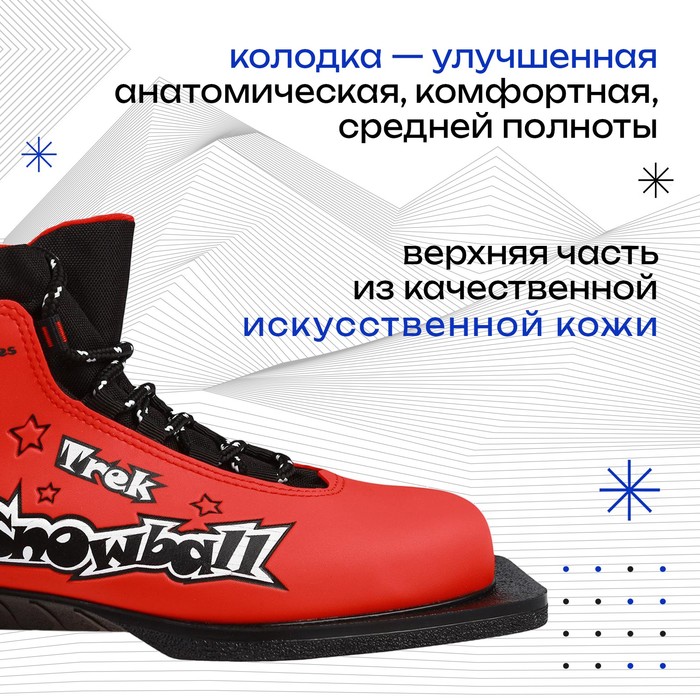 Ботинки лыжные TREK Snowball NN75 ИК, красный, лого чёрный, размер 30