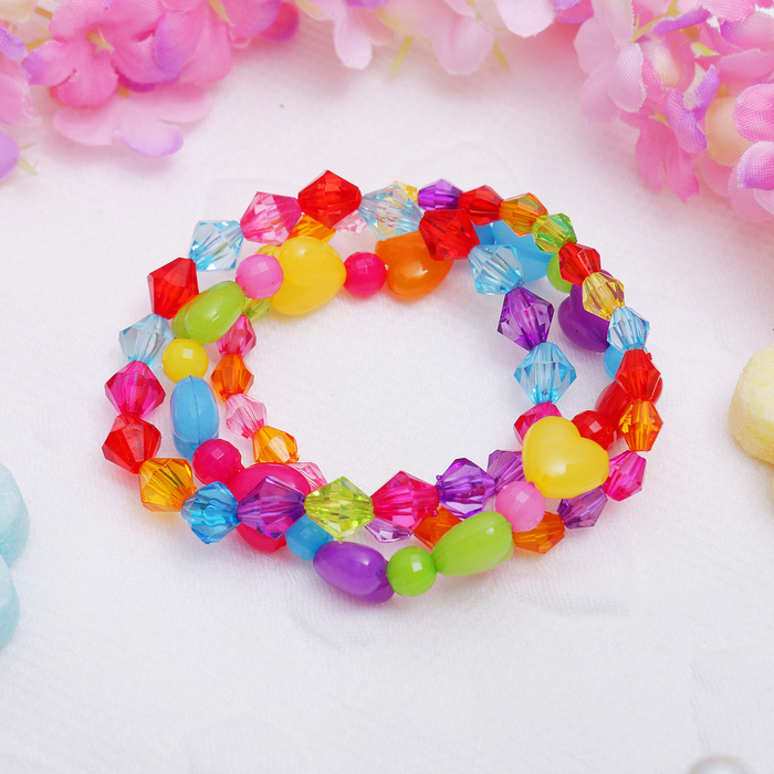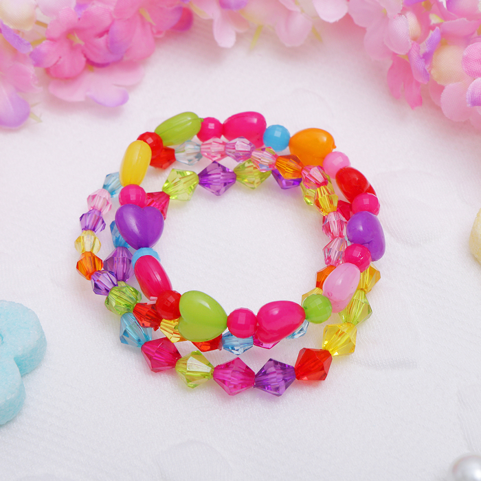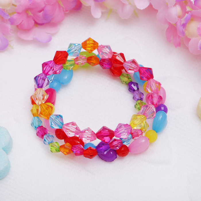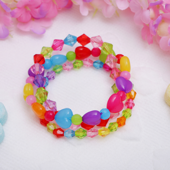 Браслет детский "Выбражулька" 3 нити, кристаллики и сердечки, цветной