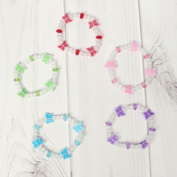 Браслет детский "Выбражулька" бусинки с бабочками, цвет МИКС
