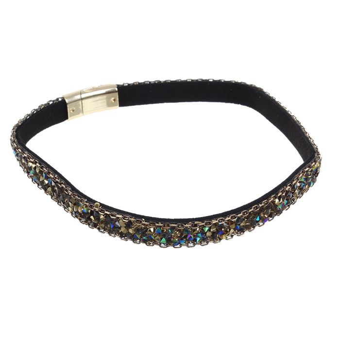 Браслет кожа "Каменная роскошь" россыпь, цвет золото