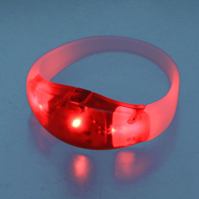 Браслет-стробоскоп реагирует на звук, 3 LED, батарейки в комплекте (2 x CR 1625), КРАСНЫЙ