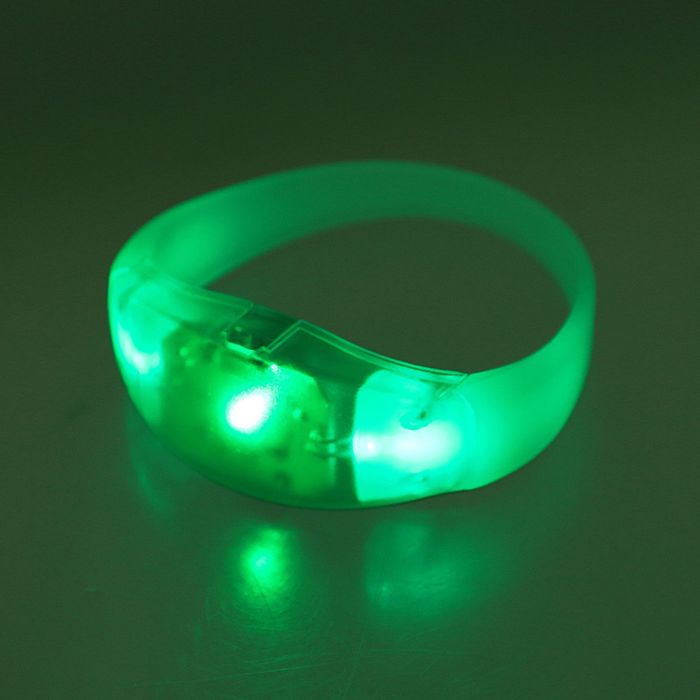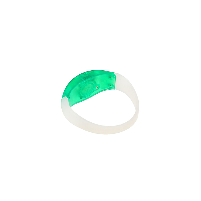 Браслет-стробоскоп реагирует на звук, 3 LED, батарейки в комплекте (2 x CR 1625), ЗЕЛЁНЫЙ
