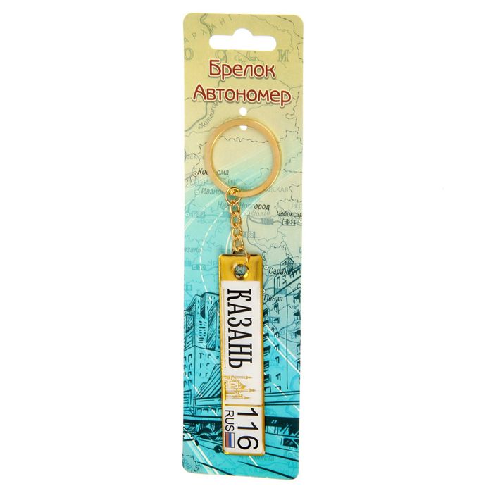 На брелоке изображён код номерного знака Республики Татарстан — 116. Казань — величественный город с более чем тысячелетней историей, славящийся во всем мире своими уникальными традициями и архитектурными сооружениями. Настоящим сокровищем Казани является мечеть Кул-Шариф — религиозный и культурный центр Татарстана. Здание из белого камня с бирюзовыми куполами представляет собой воссоздание легендарной многоминаретной мечети столицы Казанского ханства, которая была разрушена во времена Ивана Грозного.