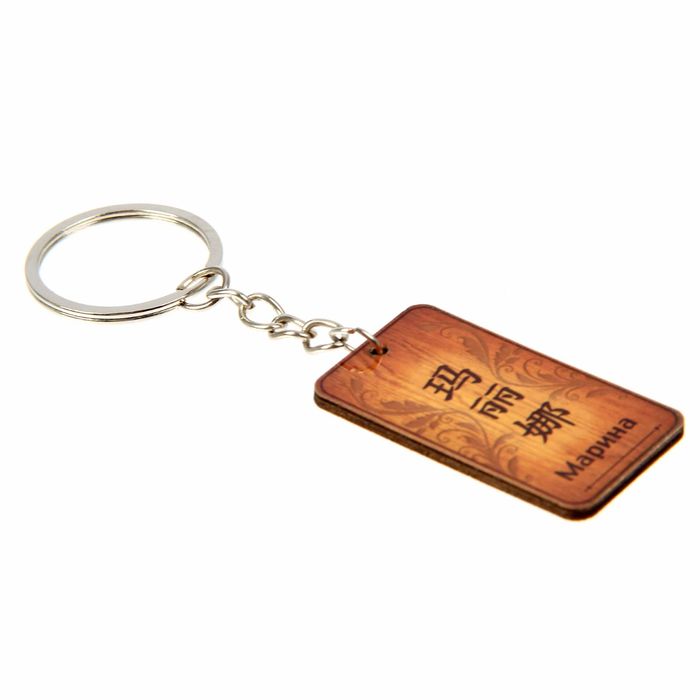 На деревянном брелоке иероглифами указано имя будущего владельца. Как знать, может, милая безделушка подтолкнёт обладателя к изучению иностранного языка.