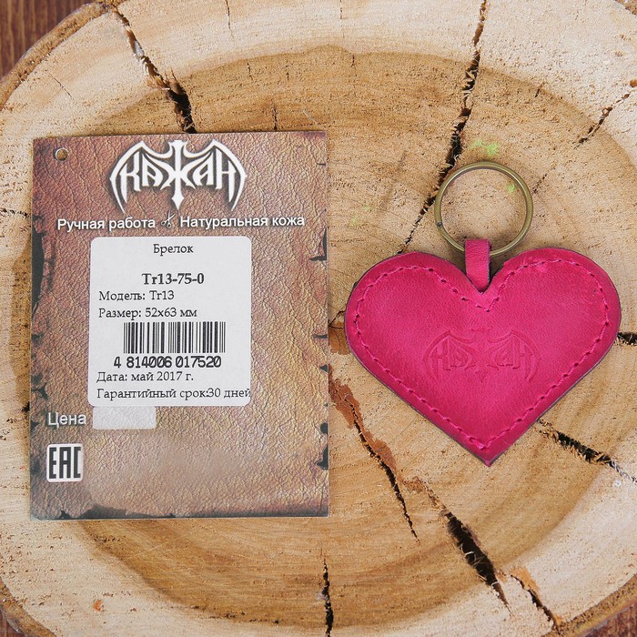 Брелок из натуральной кожи "Сердце" 5,2х6,3 см красный