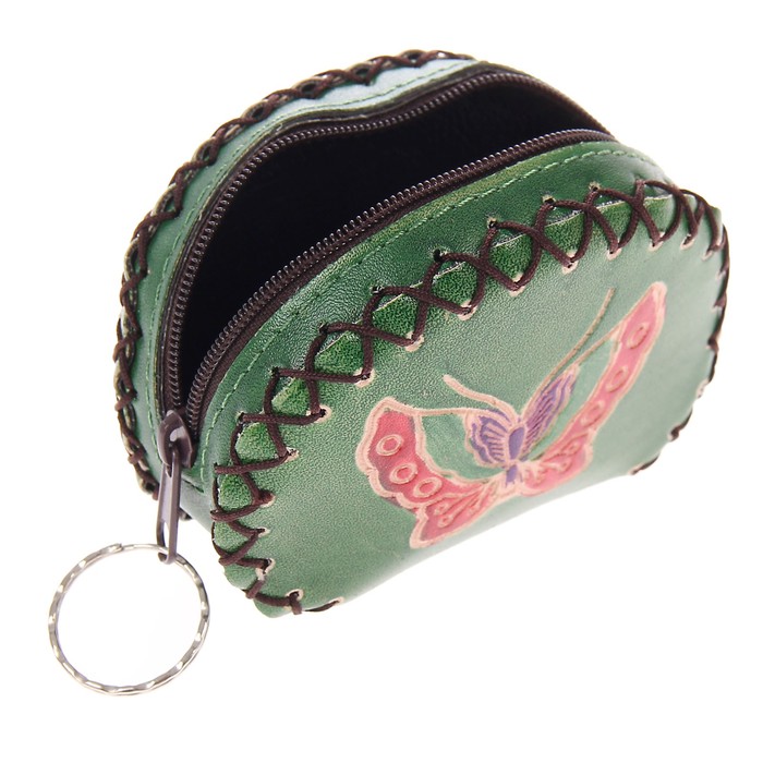 Брелок кошелёк кожзам "Цветок" зелёный 4х7х10 см