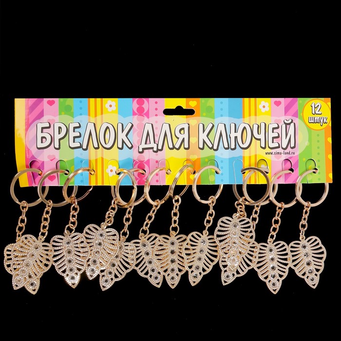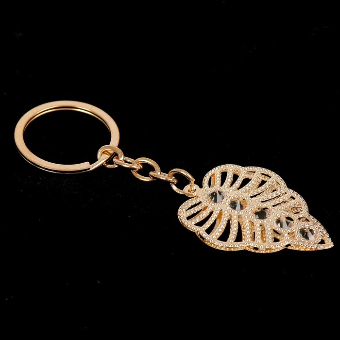 Брелок металл "Ажурный лист со стразами" 4х4 см
