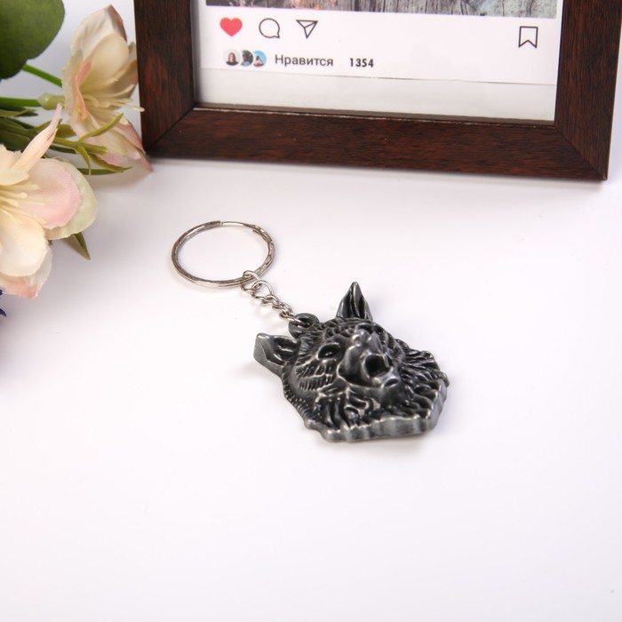 Брелок металл "Голова волка" серебро 4,7х3,6 см