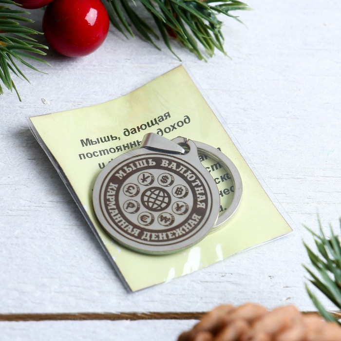 Брелок-оберег денежный "Мышь валютная", мед. сталь