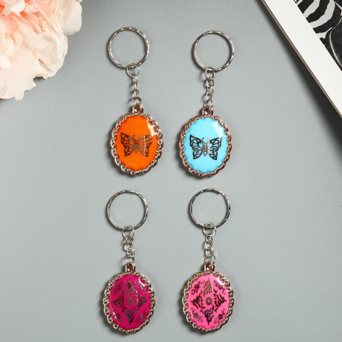 Брелок пластик под металл "Бабочка в овале" МИКС 4,2х3 см