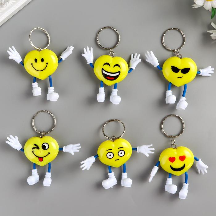Брелок пластик "Сердечко-смайлик с ручками и ножками" МИКС 5,5х6х2 см