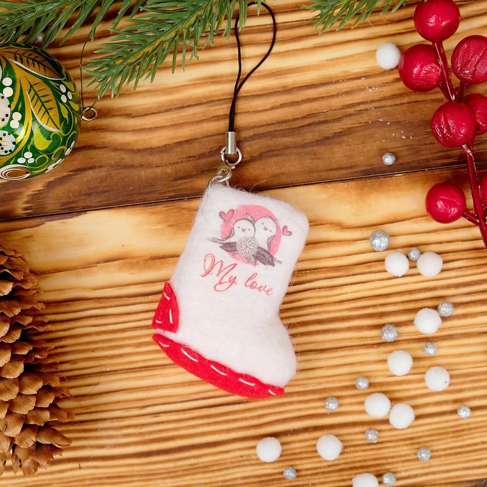 Брелок «Валенок с подшивкой», моя любовь, 5.5 × 4 см, ручная работа