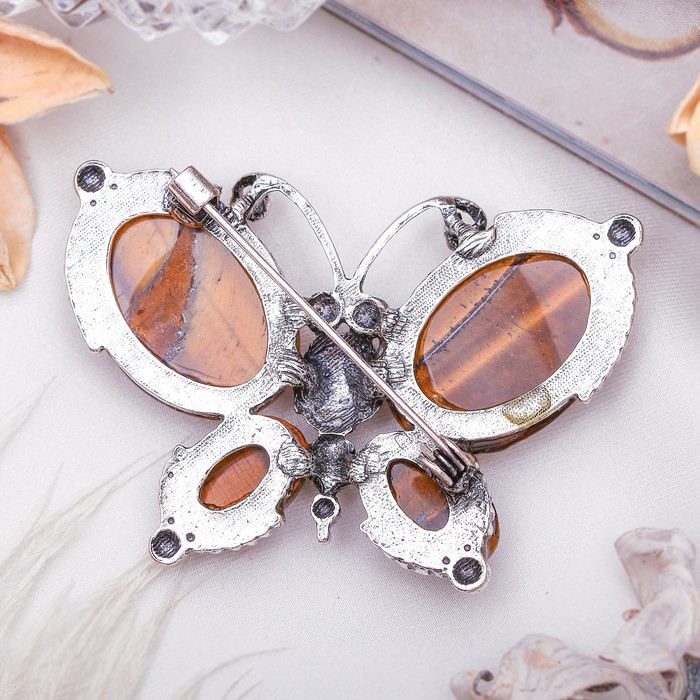 Ни один стиляга не будет выглядеть современно без искусно подобранных украшений, которые завершат его образ! Бижутерия — это современная недорогая альтернатива изделиям из золота и прочих драгоценных металлов. Брошь бабочка макси "Тигровый глаз" в чернёном серебре — это то, что добавит вам шарма!