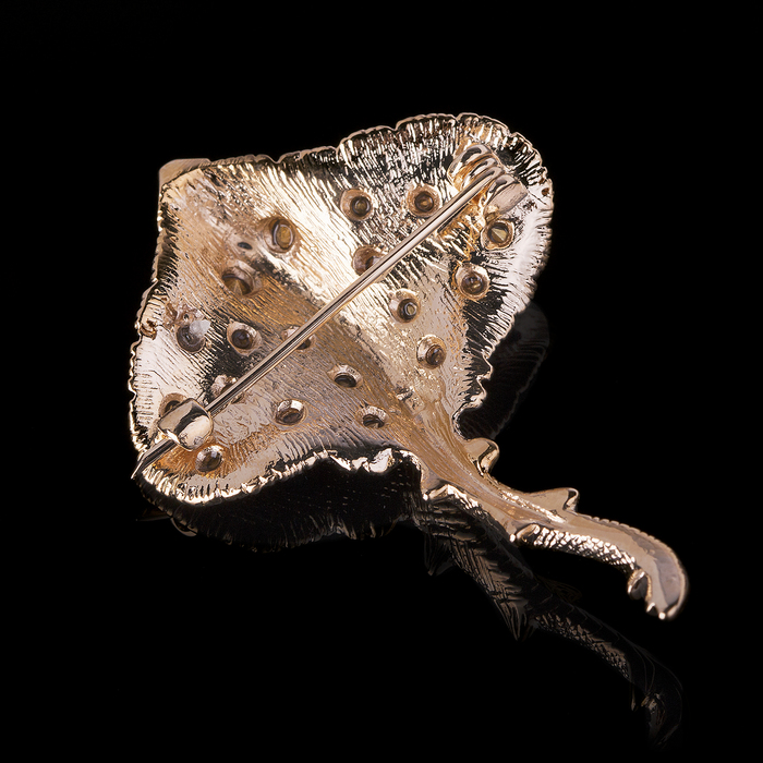 Ни один стиляга не будет выглядеть современно без искусно подобранных украшений, которые завершат его образ! Бижутерия — это современная недорогая альтернатива изделиям из золота и прочих драгоценных металлов. Брошь бижар "Скат", цвет синий в золоте — это то, что добавит вам шарма!