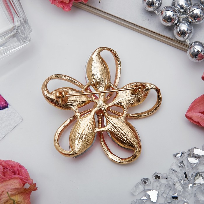 Брошь "Цветок" валлота, цвет бело-розовый в золоте
