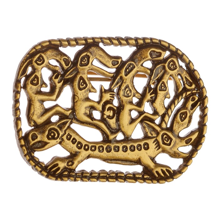 Ни один стиляга не будет выглядеть современно без искусно подобранных украшений, которые завершат его образ! Бижутерия — это современная недорогая альтернатива изделиям из золота и прочих драгоценных металлов. Брошь «Двуголовый ящер с четырьмя всадниками» H 31 мм, L 46 мм латунь — это то, что добавит вам шарма!