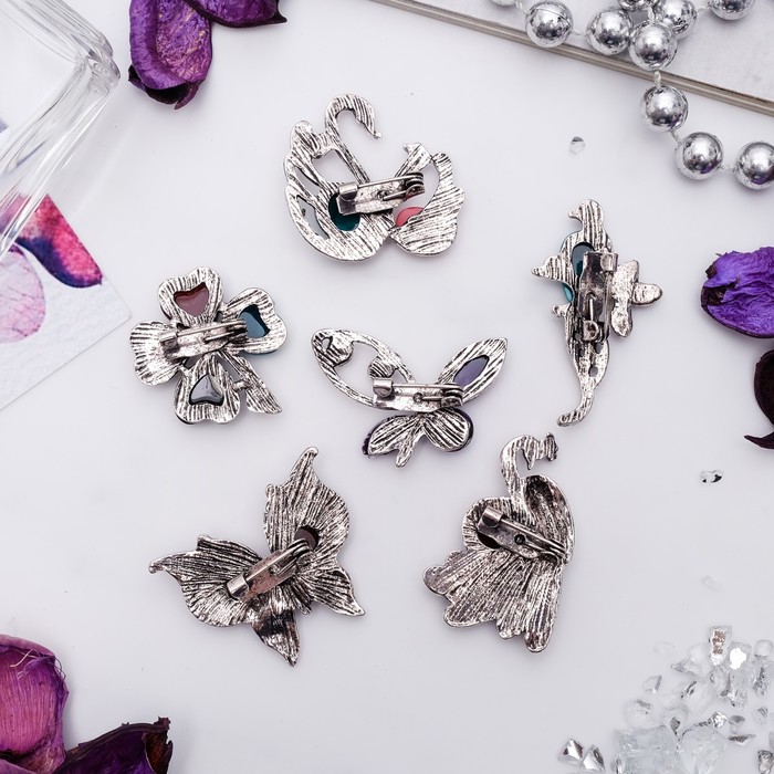 Брошь "Флора", форма МИКС, цвет МИКС в черненом серебре