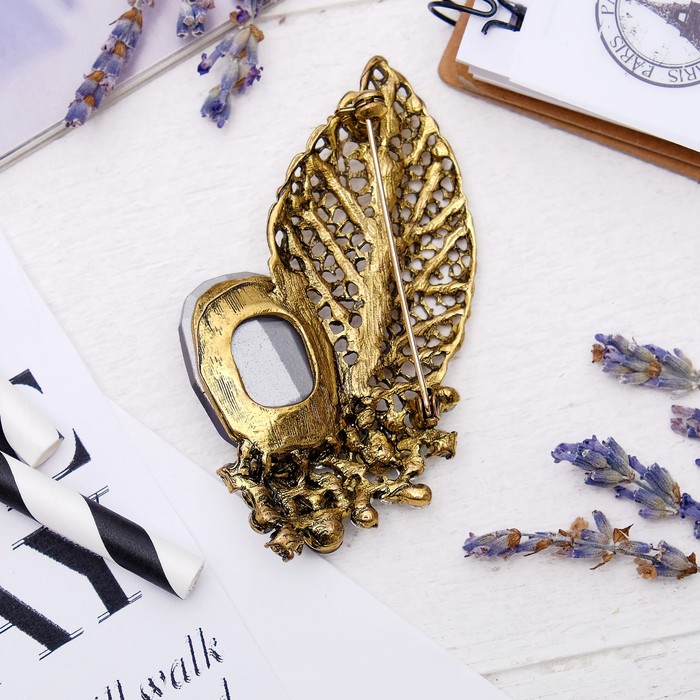 Ни один стиляга не будет выглядеть современно без искусно подобранных украшений, которые завершат его образ! Бижутерия — это современная недорогая альтернатива изделиям из золота и прочих драгоценных металлов. Брошь "Лист" россыпь камней, цвет серо-синий в черненом золоте — это то, что добавит вам шарма!