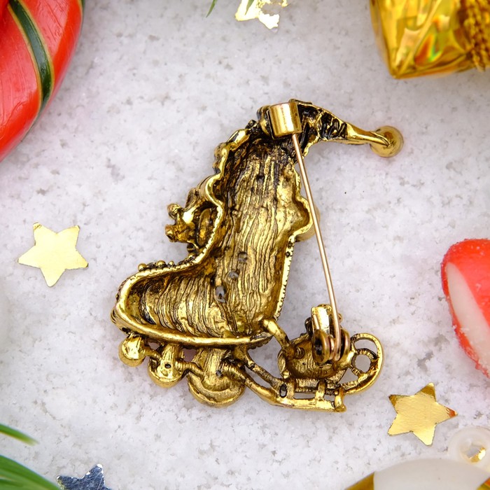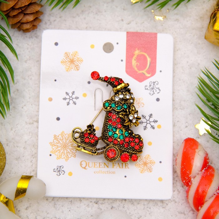 Ни один стиляга не будет выглядеть современно без искусно подобранных украшений, которые завершат его образ! Бижутерия — это современная недорогая альтернатива изделиям из золота и прочих драгоценных металлов. Брошь "Новогодняя сказка" гном в санях, цвет красно-зеленый в черненом золоте — это то, что добавит вам шарма!