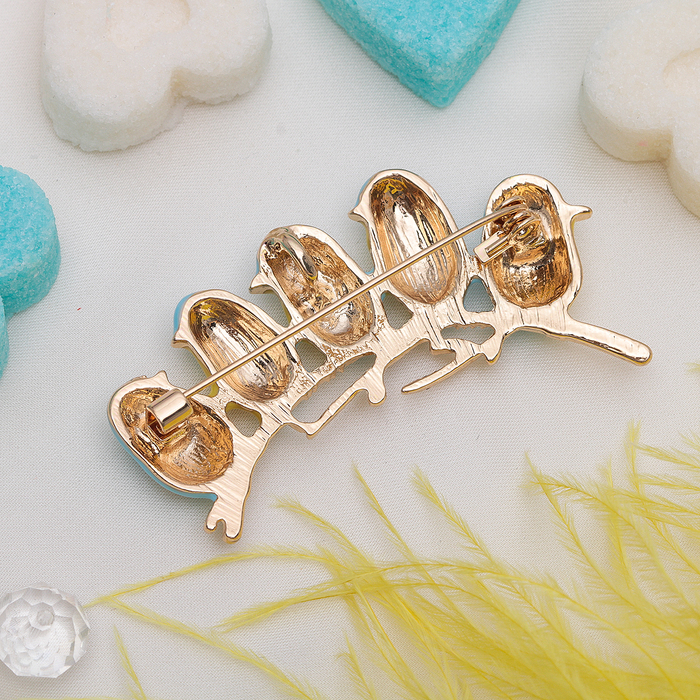 Ни один стиляга не будет выглядеть современно без искусно подобранных украшений, которые завершат его образ! Бижутерия — это современная недорогая альтернатива изделиям из золота и прочих драгоценных металлов. Брошь "Птенчики", цвет желто-голубой в золоте — это то, что добавит вам шарма!