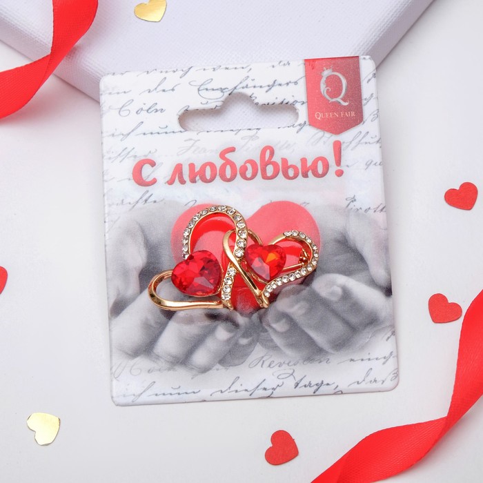 Ни один стиляга не будет выглядеть современно без искусно подобранных украшений, которые завершат его образ! Бижутерия — это современная недорогая альтернатива изделиям из золота и прочих драгоценных металлов. Брошь "Сердца влюбленных", цвет красно-белый в розовом золоте — это то, что добавит вам шарма!