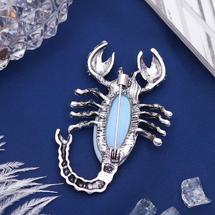 Ни один стиляга не будет выглядеть современно без искусно подобранных украшений, которые завершат его образ! Бижутерия — это современная недорогая альтернатива изделиям из золота и прочих драгоценных металлов. Брошь скорпион "Лунный камень" в чернёном серебре — это то, что добавит вам шарма!