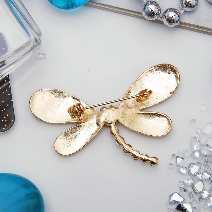 Брошь "Стрекоза" геометрия, цвет бело-голубой в золоте