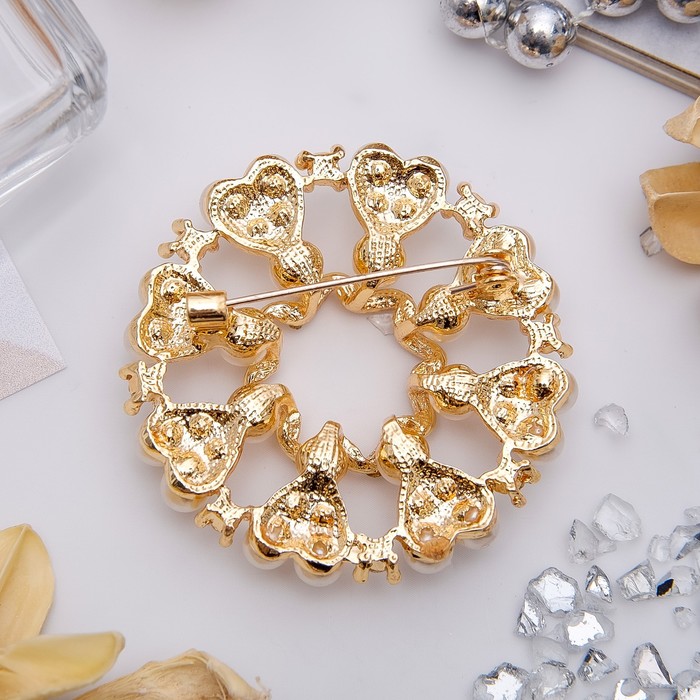 Брошь "Венок жемчужный" бусинки, цвет белый в золоте