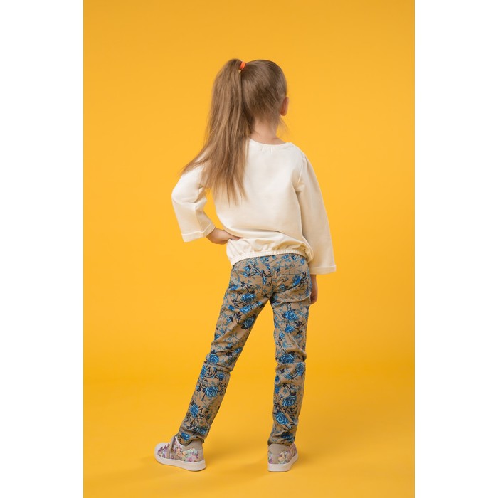 Всё потому, что Брюки для девочек, рост 164 см, возраст 14 лет, цвет бежевый с синими розами — это: