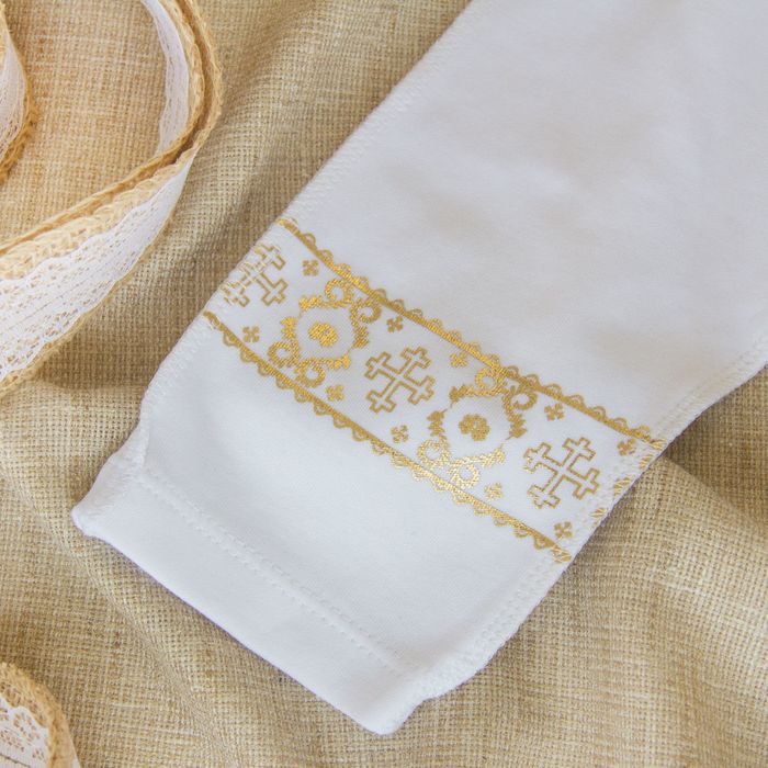 Брюки крестильные, рост 56 см, цвет белый, принт золотистый К101-5_М