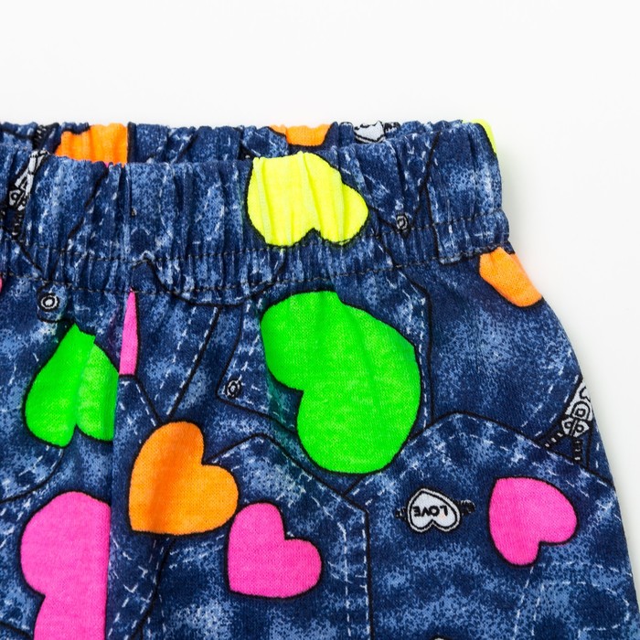 Брюки (лосины) для девочки, рост 98 см, цвет джинс, принт сердечки